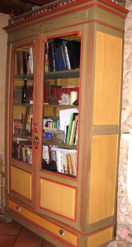 Mise en peinture d'une bibliothèque dans un ton de brun foncé